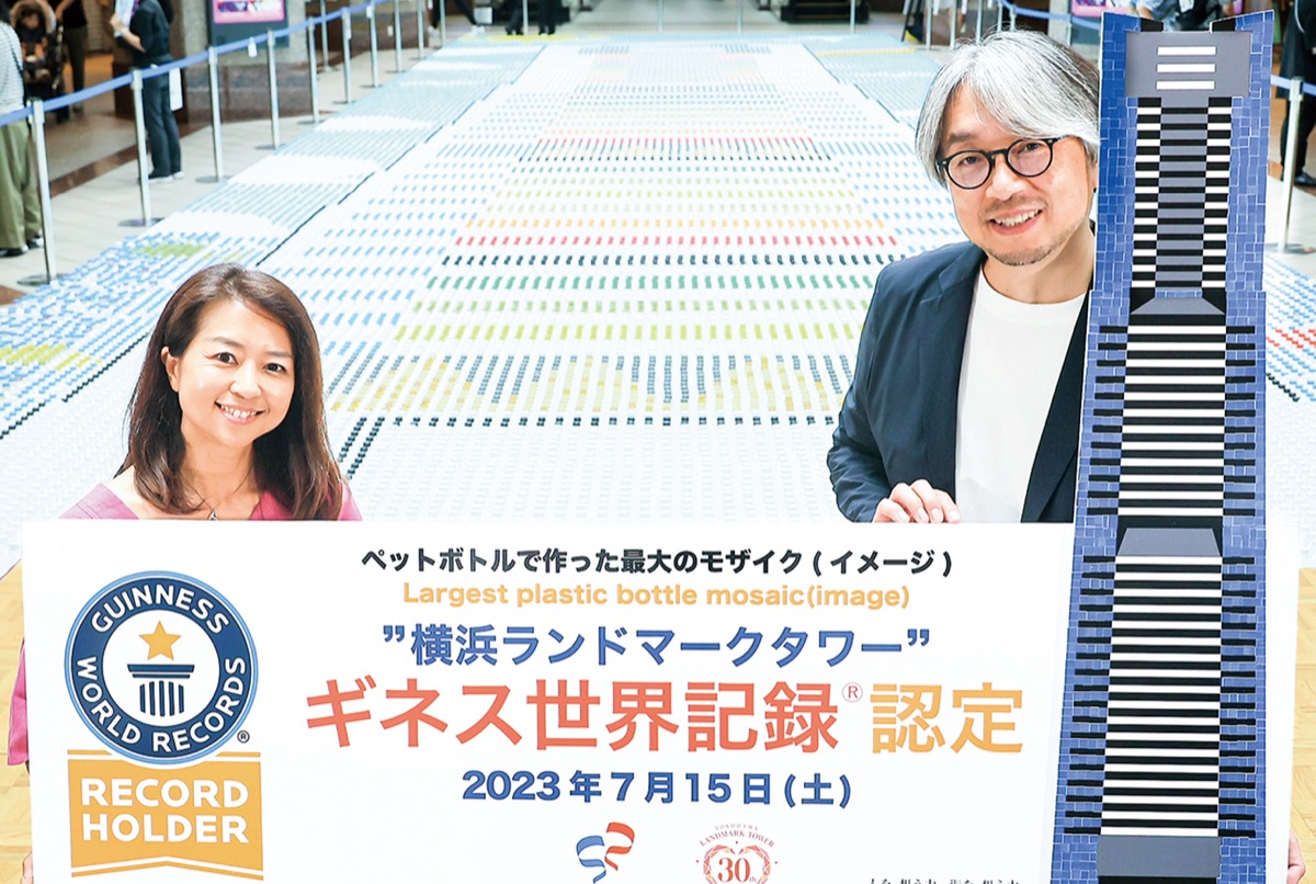 今年開業30周年を迎えた横浜ランドマークタワー・ランドマークプラザは7月15日、ペットボトルを用いたモザイクアートを制作。127・175平方メートルの世界最大サイズとしてギネス世界記録に認定された。
