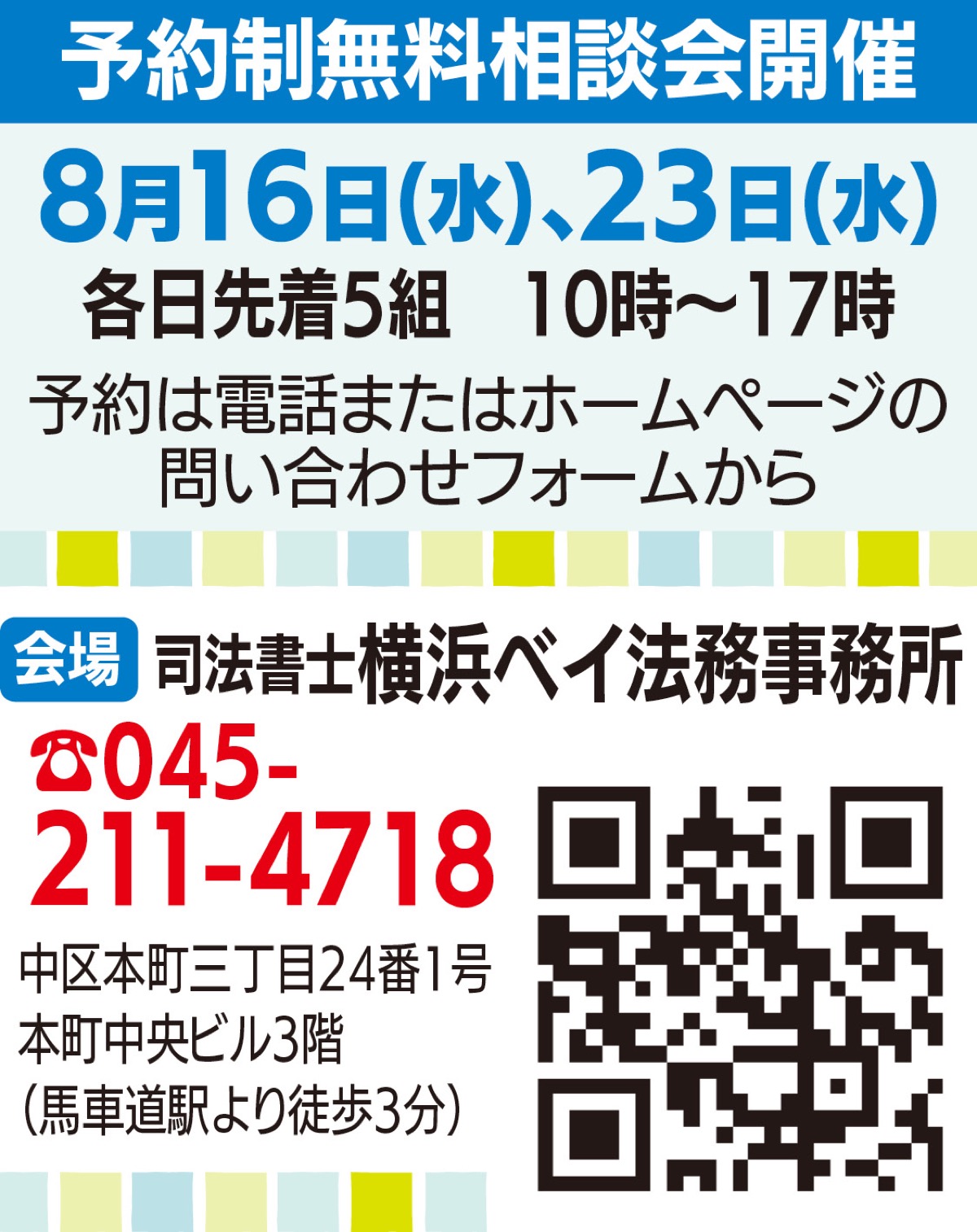 相続に特化した「司法書士横浜ベイ法務事務所」で無料の相談会が開催される(日時は表参照)。相談に応じる司法書士の森拓野さんは「些細なことでもお気軽にご相談ください」と話す。