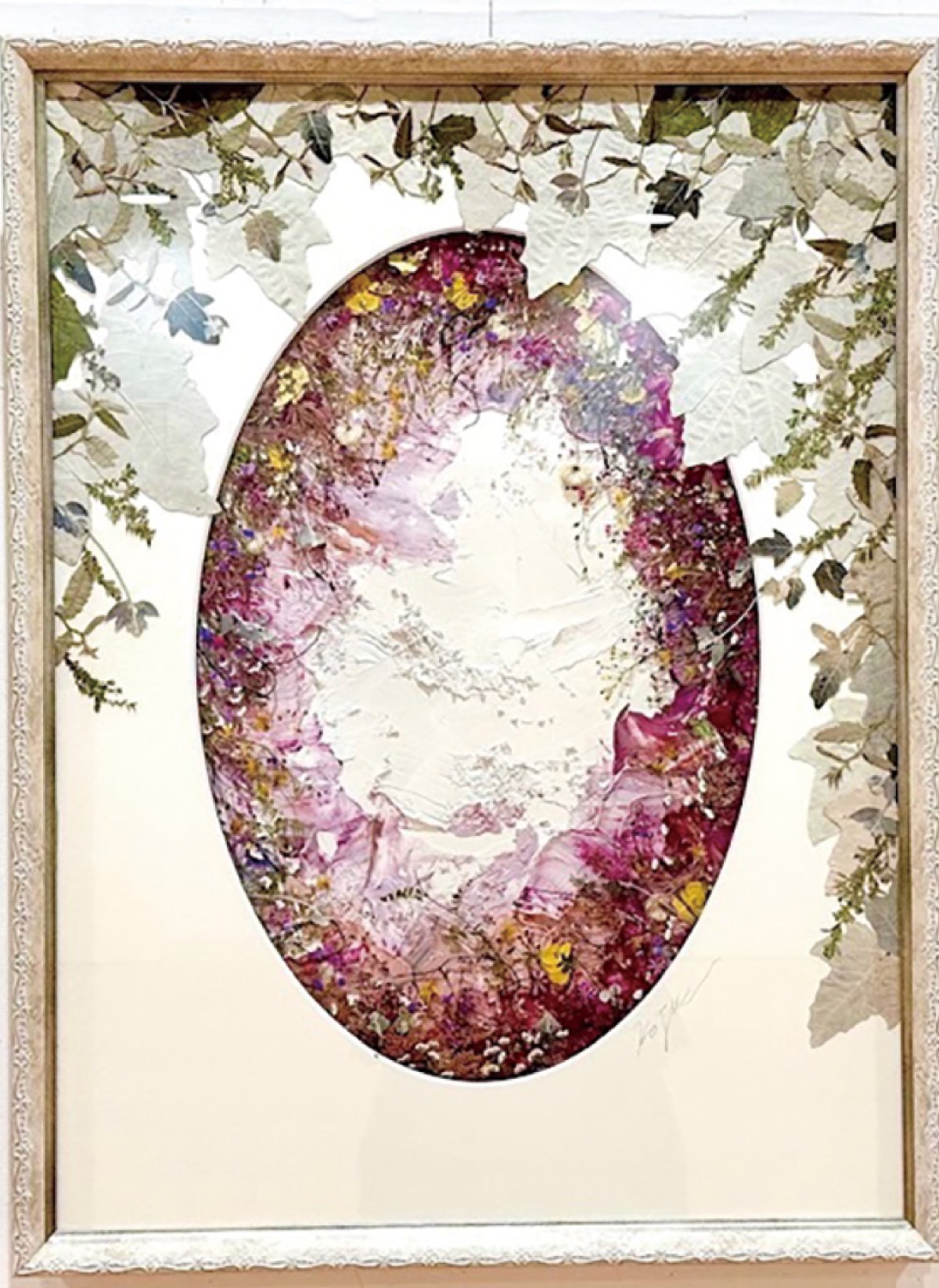 押し花アートやトールペイント、水墨画写し絵など、文化協会に所属するメンバーの作品が並ぶ。初日には夏休みの子ども向けワークショップも行われ、制作された作品もギャラリーに展示。
