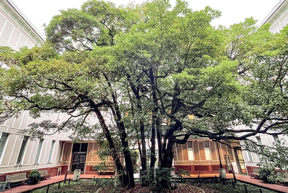 横浜開港の象徴として親しまれている通称「たまくすの木」(中区日本大通の開港資料館中庭)。その維持管理に向け、同館を運営する横浜市ふるさと歴史財団は、日本樹木医会神奈川県支部=秦野市=と8月1日に協定書を締結した。たまくすの木の維持管理を通して、開港の歴史啓発を進めたい考えだ。