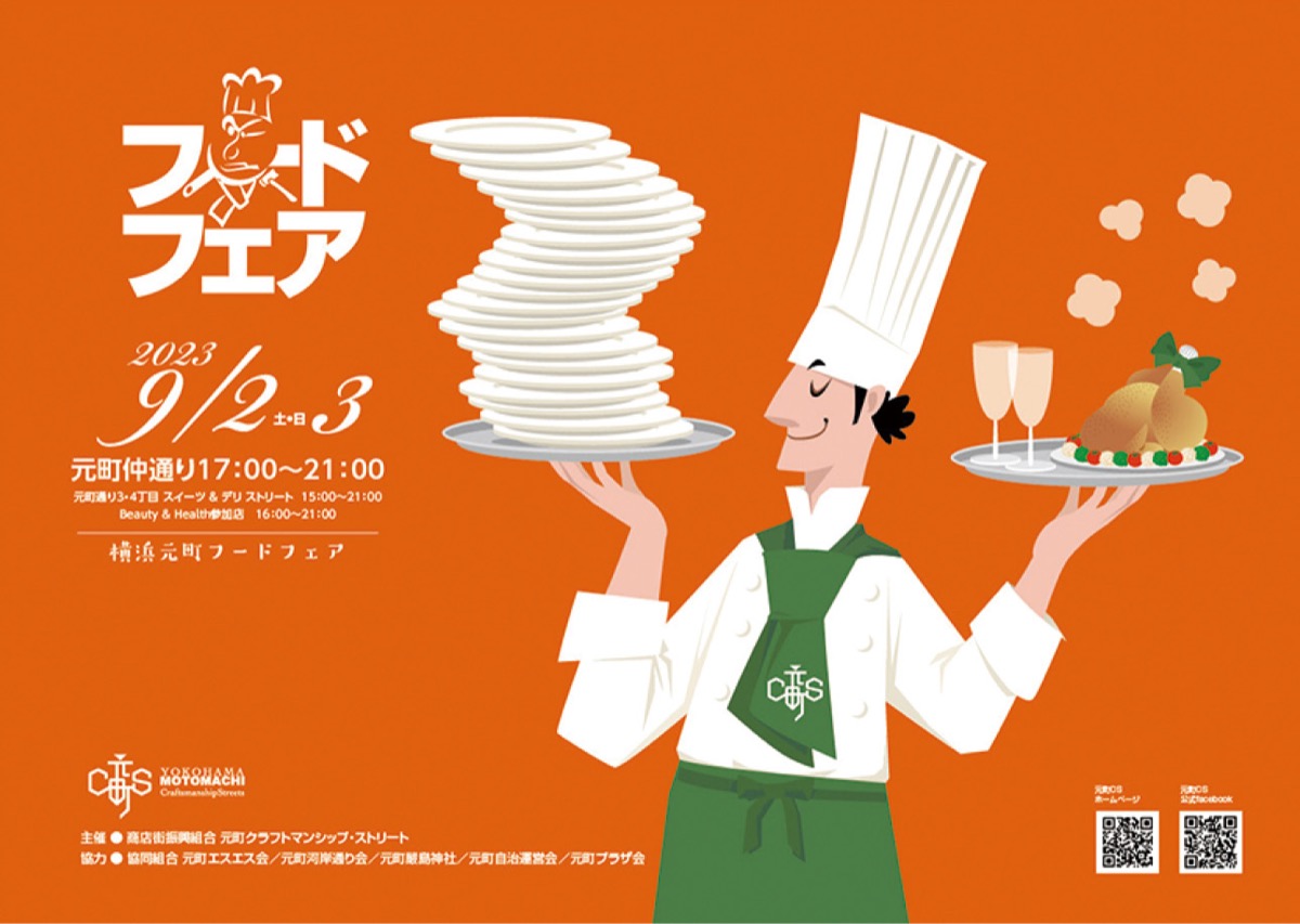 名店の味を気軽に楽しめる「横浜元町フードフェア」が、9月2日(土)と3日(日)に開催される。会場は元町仲通りなど。主催は元町クラフトマンシップ・ストリート。