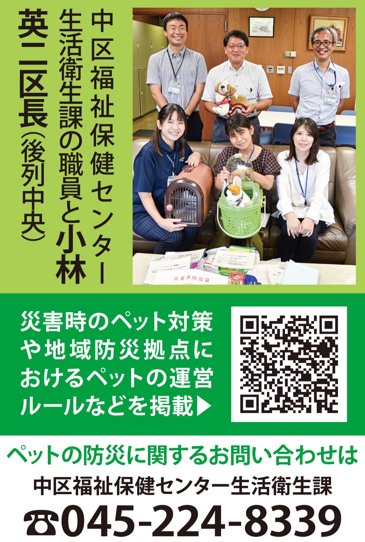 中区内のいくつかの地域防災拠点では、ペットの受け入れマニュアルや飼育ルールなどの整備を行っています=左記二次元コード参照。担当職員は「ペットの有無に関わらず、平時からお互いの理解を深めてもらえたら」と話していました。
