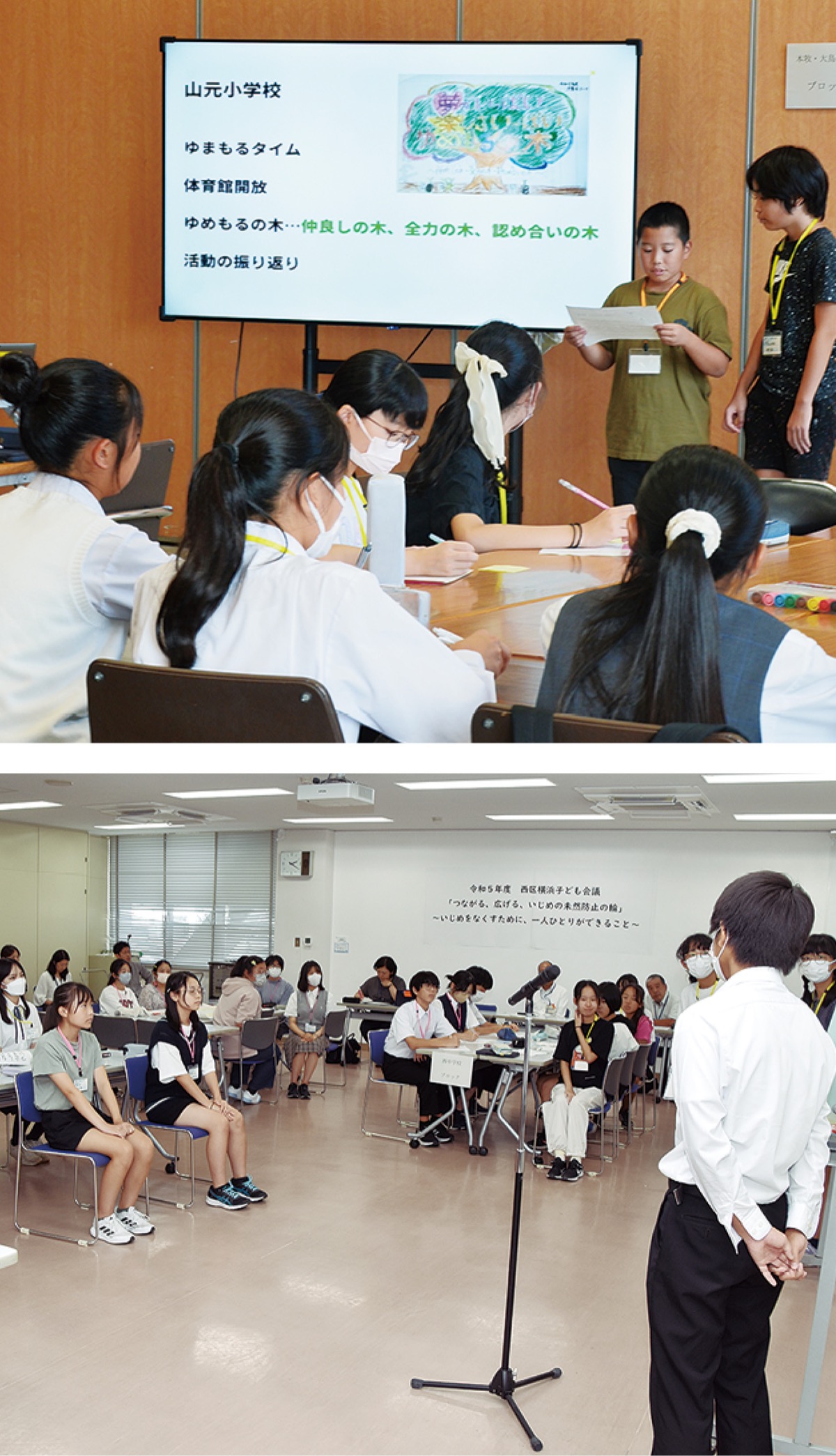 今年度のテーマは「つながる、広げる、いじめの未然防止の輪」。昨年12月の「いじめ防止フォーラム」の協議を踏まえ、市立小中学校の子どもたちが中学校ブロックごとにグループをつくり、話し合いや実践の成果を発表。その内容を各校に持ち帰り、今後の取組に生かしていく。