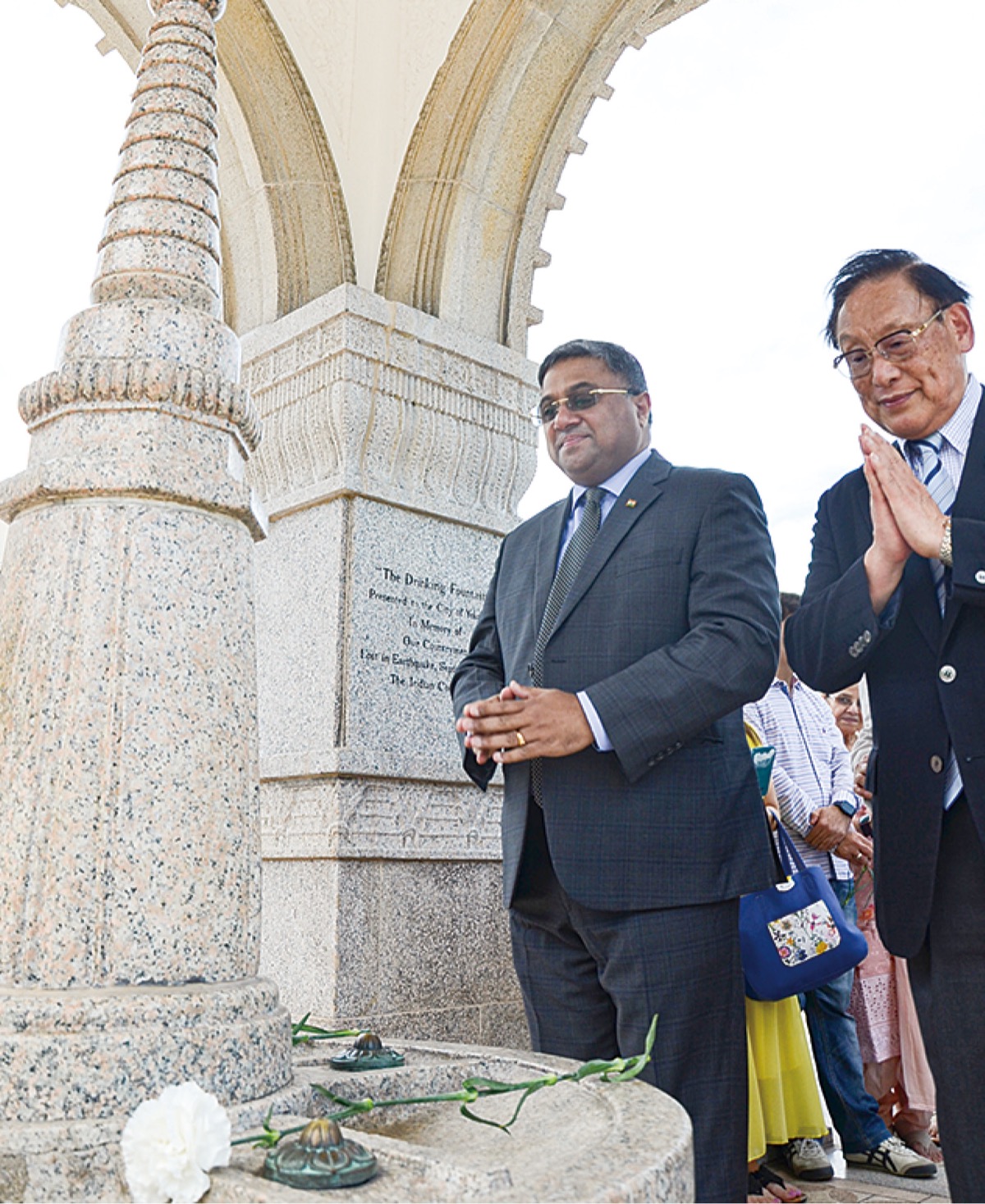 関東大震災の被災者および在横浜インド人被災者の追悼式が9月2日、山下公園のインド水塔で行われた。震災から100年の節目にシビ・ジョージ駐日インド大使をはじめ、日印交流市民団体やインド関連企業、関心をもつ市民ら約50人が集まり、花を手向け悼んだ。