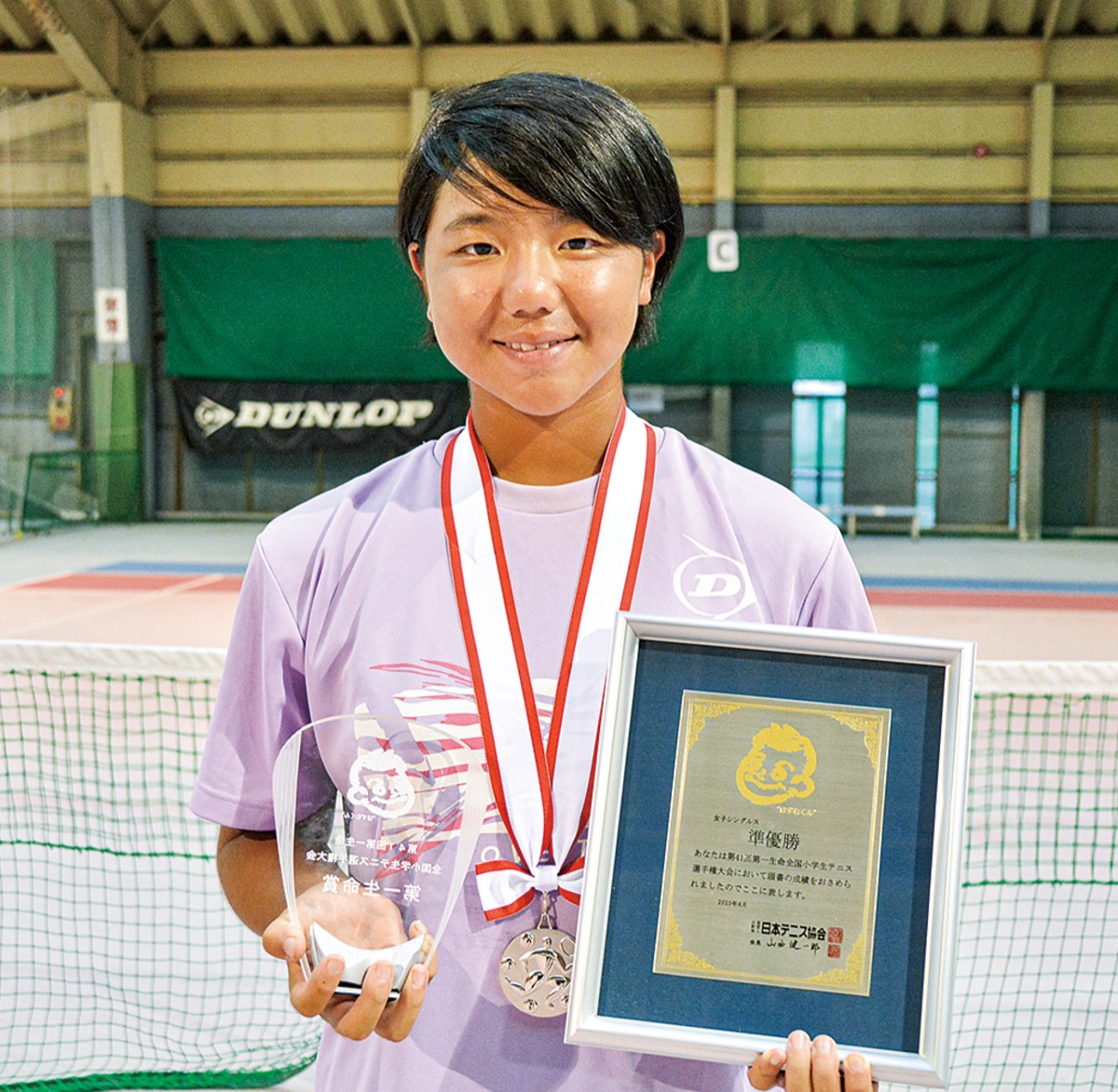磯子区原町の根岸テニスガーデンを練習拠点とする赤羽奏那さん(宮谷小学校6年/ダンロップテニススクール根岸所属)が、8月に東京都で開かれた「第41回第一生命全国小学生テニス選手権大会」に出場し、女子シングルスで準優勝した。同スクールの中島一輝さん(根岸小学校6年/TEAM YONEZAWA所属)は、男子シングルスで優勝した。
