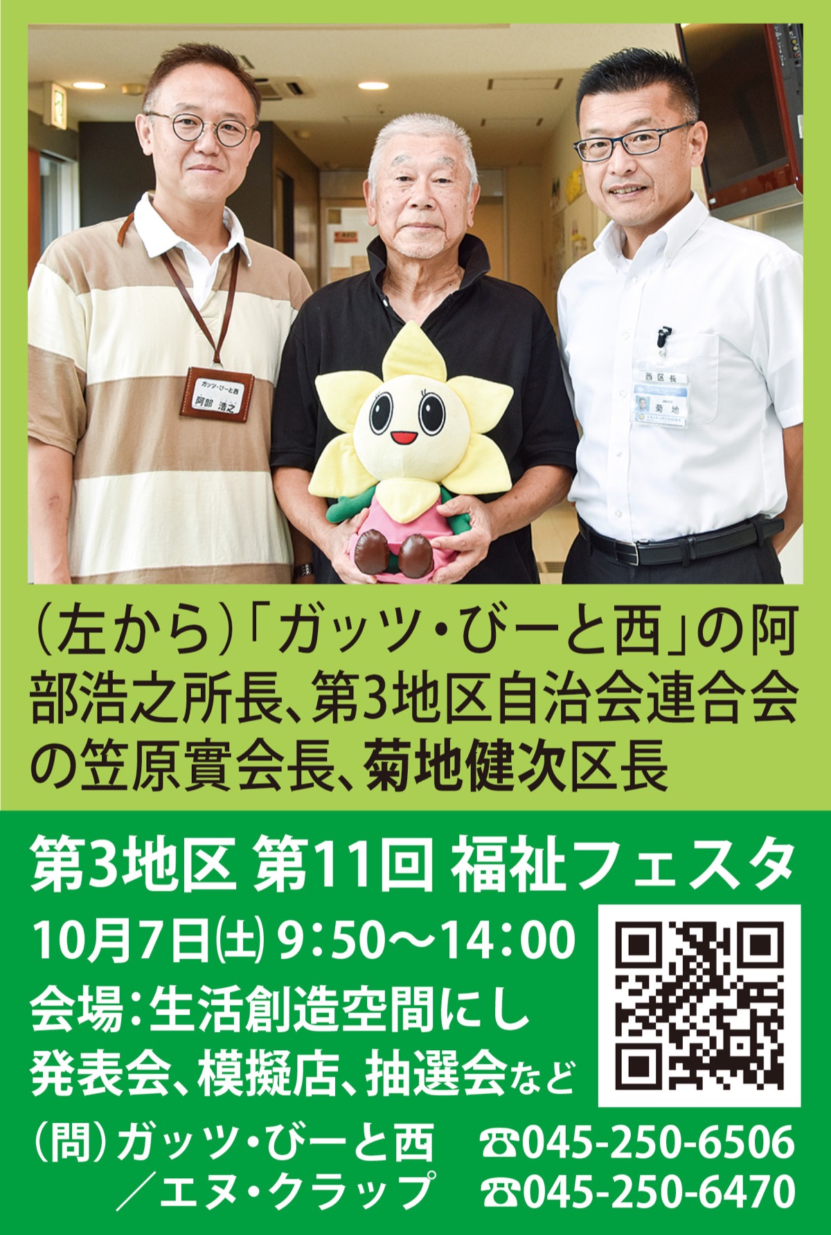 第3地区の福祉フェスタが10月7日に「生活創造空間にし」で開催されます。4年ぶり、11回目となります。