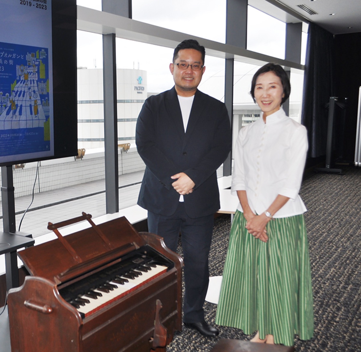 同ホールの初代ホールオルガニスト、三浦はつみさんと2代目の近藤岳さんが、日本や横浜におけるオルガンの歴史などについて語り合った。