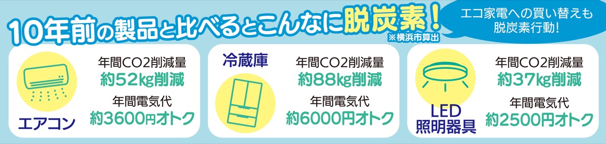 横浜市は家計の負担軽減や温暖化対策を目的に、節電効果の大きいエコ家電の購入を市民向けに支援する「エコハマ(横浜市エコ家電応援キャンペーン)」を実施している。期間中に登録店舗で購入した対象製品のうち、本体の税抜価格から20%分(上限3万円分)がポイントで還元される。申請期間は来年1月31日まで(予算上限に達し次第早期終了)。