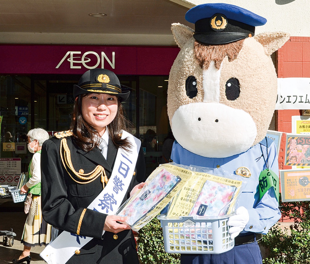 山手警察署は13日、中区のコミュニティ放送局「マリンFM」のラジオパーソナリティ、横山珠夢さんを一日警察署長に迎え、イオン本牧店で自転車盗や特殊詐欺防止の啓発を呼びかけた。