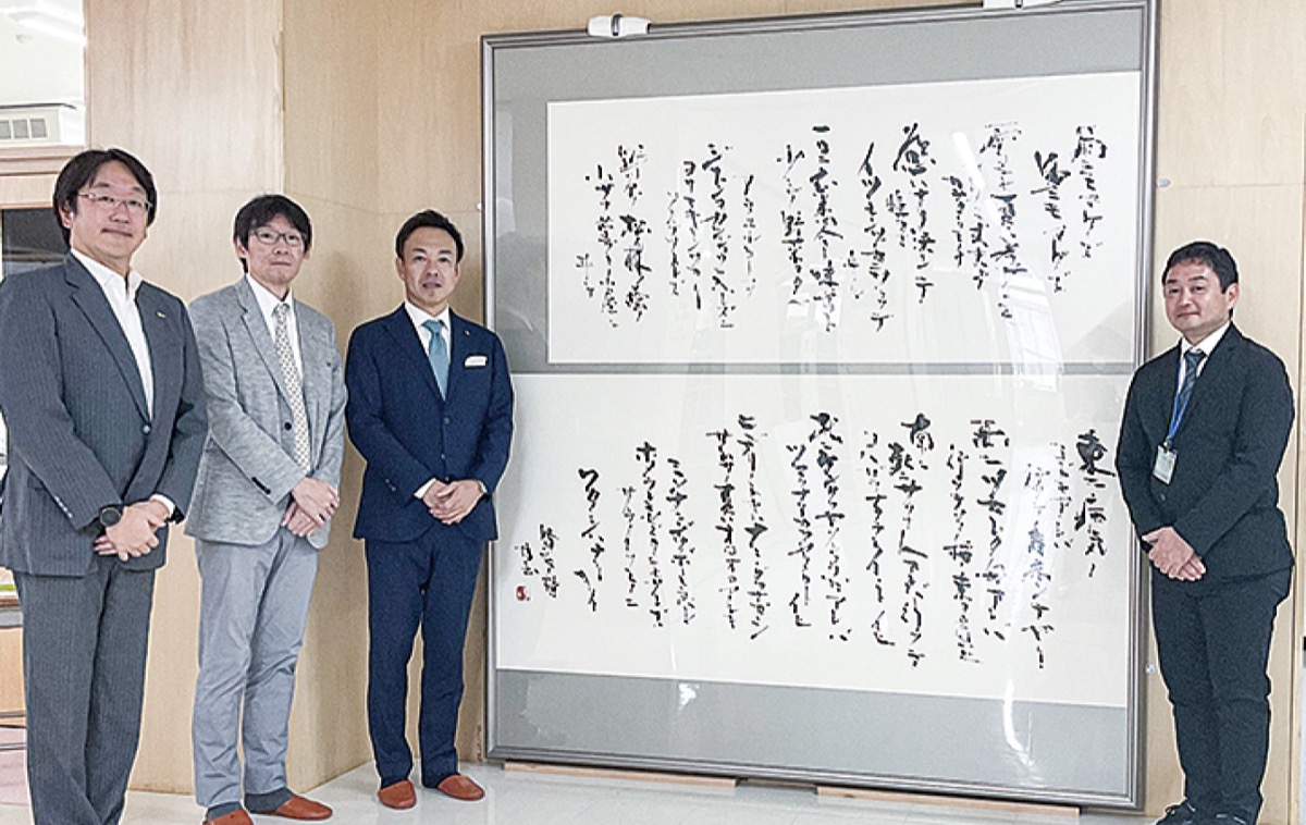 横浜MM21ロータリークラブは10月18日、みなとみらい本町小学校=西区高島=に宮澤賢治の『雨ニモマケズ』の書作品を寄贈した。