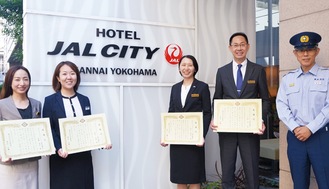 ホテルJALシティ関内横浜=中区山下町=は10月26日、従業員の人命救助を行ったとして中消防署から感謝状を贈呈された。