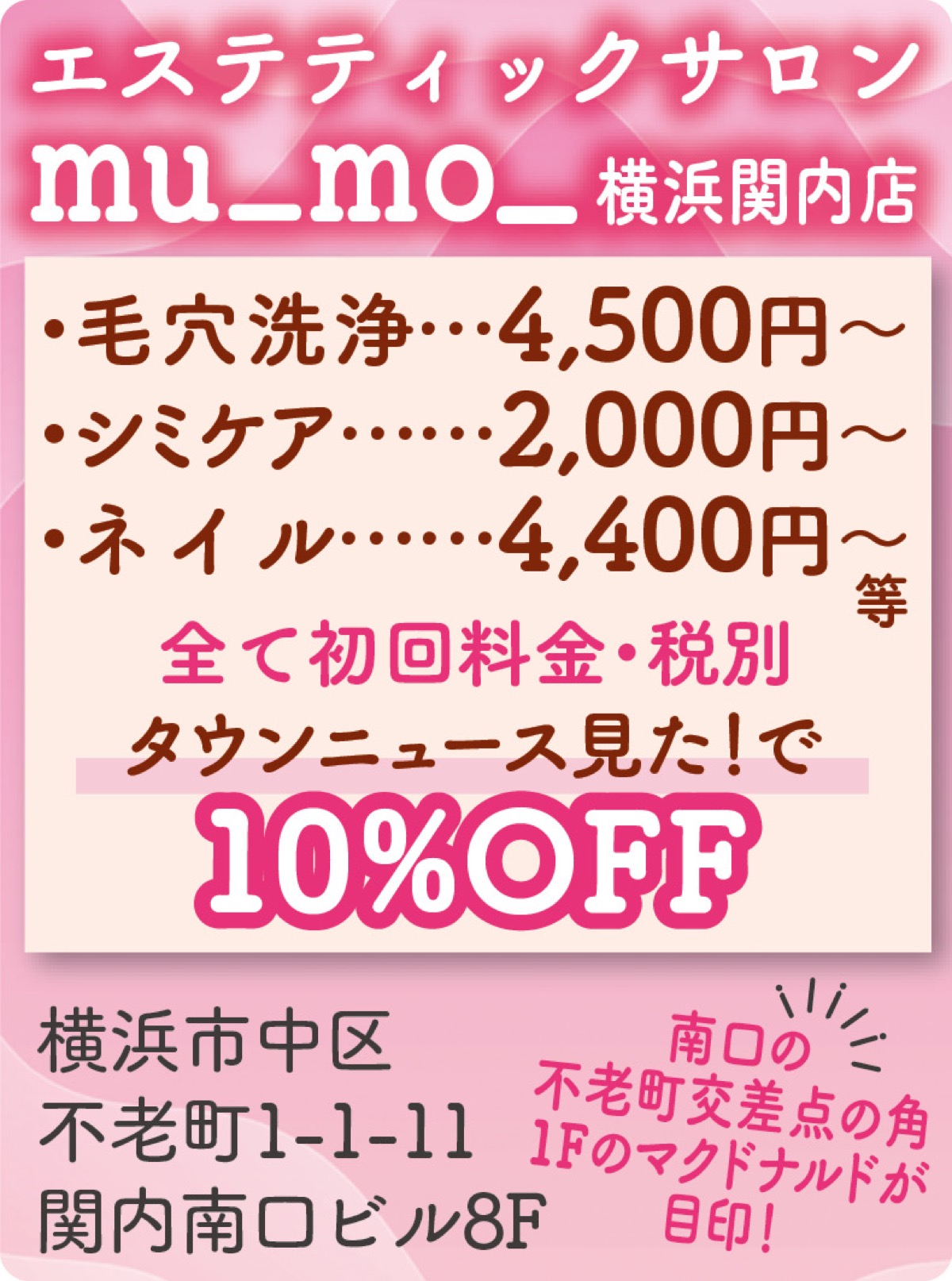 全身の美容ケアができるサロン「エステティックサロンmu_mo_」が今年10月、JR関内駅南口から徒歩2分のビル8階にオープンした。