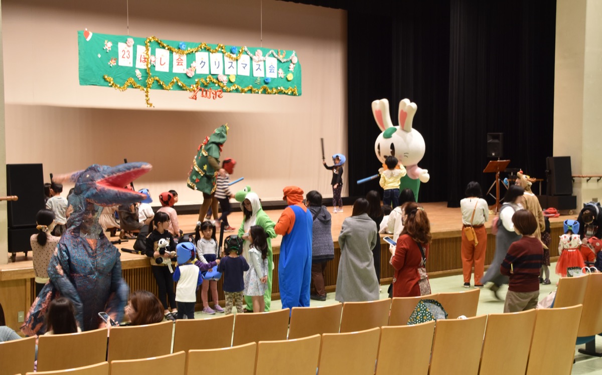 ひとり親世帯を支援しようと「クリスマス会」が12月16日、西公会堂で行われた。市内在住の保護者45人、子ども68人の計113人が参加した。