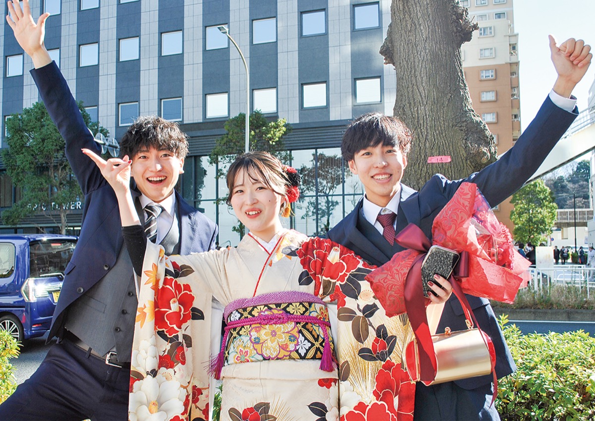市内では3万5863人、中区からは1215人、西区からは853人が門出を迎えた。新型コロナウイルス感染症の5類移行後、初めての開催。式典は3回に分けて行われた。雲一つない晴天に恵まれ、学友との再会を喜ぶ若者の笑顔があふれていた。