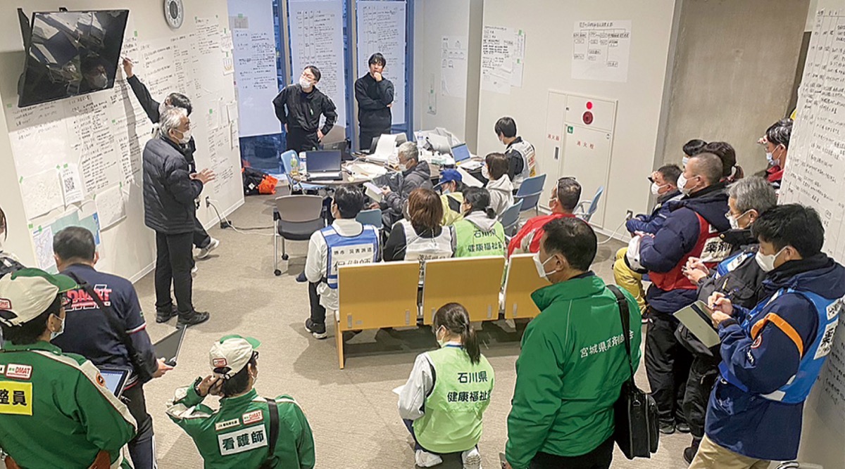 石川県から日本薬剤師会を通じて要請を受け、第一次派遣として4人の薬剤師が同車両と四駆の乗用車で出発。能登町の宇出津(うしつ)を拠点に活動している。現地医療チーム(DMAT)からの処方箋を基に調剤し、宮城や福岡など各地の薬剤師会と連携しながら避難所を巡回しているという。14日に第二次派遣と交代、以降も4泊か5泊で入れ替えながら派遣を継続する。