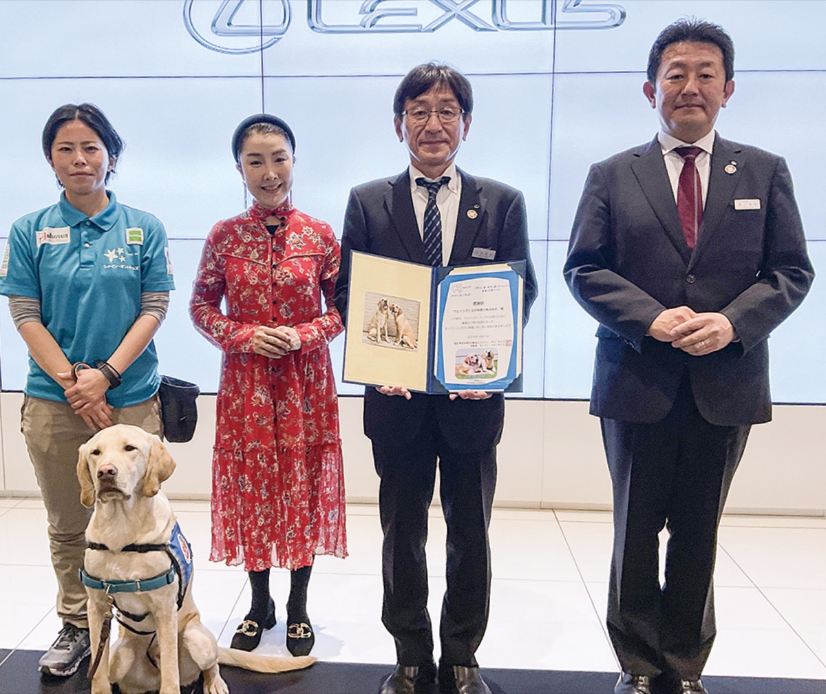 1月31日にレクサス山下公園ショールームで行われた感謝状贈呈式には、育成中の候補犬・トミーくんも同席。同NPO理事の谷本有香さんは「ご寄付と同時にファシリティドッグについての認知を広げる素晴らしい機会をいただけた」と感謝。同社の山内英志執行役員は「病気と闘う子どもたちの治療や心のケアにも寄り添う犬の姿に感銘を受けた。この活動をもっと広げていけたら」と話した。