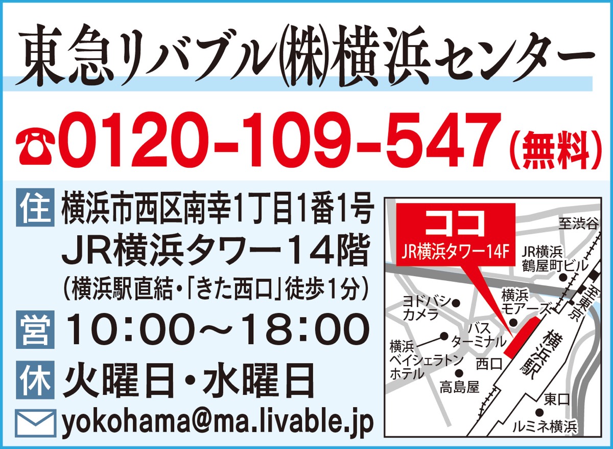 横浜駅直結のJR横浜タワー14階にある「東急リバブル横浜センター」の伊藤祐次センター長は「人生100年時代をイキイキと過ごすためにも不動産の悩みや疑問を抱えたままにせず、まずはプロに相談して欲しい」と呼びかける。