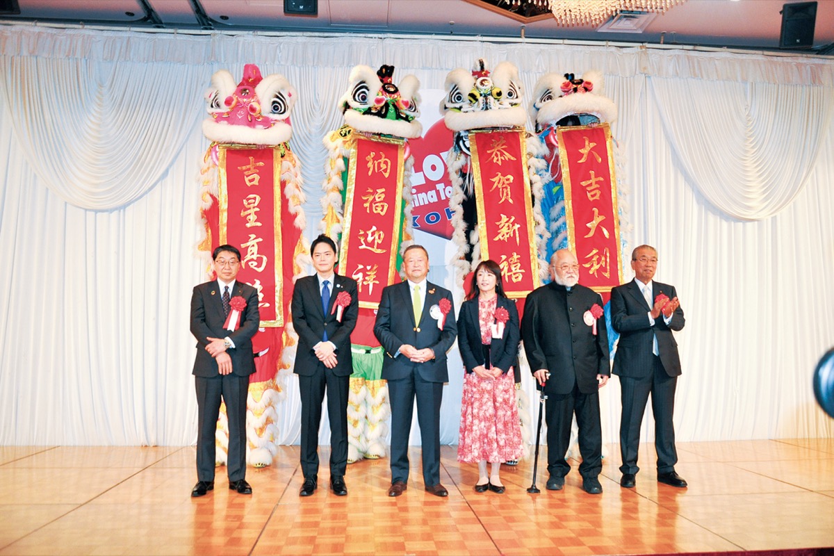 横浜中華街発展会協同組合の「2024年春節賀詞交換会」が2月10日にローズホテル横浜=中区山下町=で行われた。武井政二神奈川県副知事や山中竹春横浜市長、横浜商工会議所の野並直文副会頭らが来賓として招かれていた。関係者ら約400人が参加した。オープニングでは、横浜中華学校校友会国術団による獅子舞が披露され、獅子が来賓らの頭をかみながらまわり、会場を沸かせた。