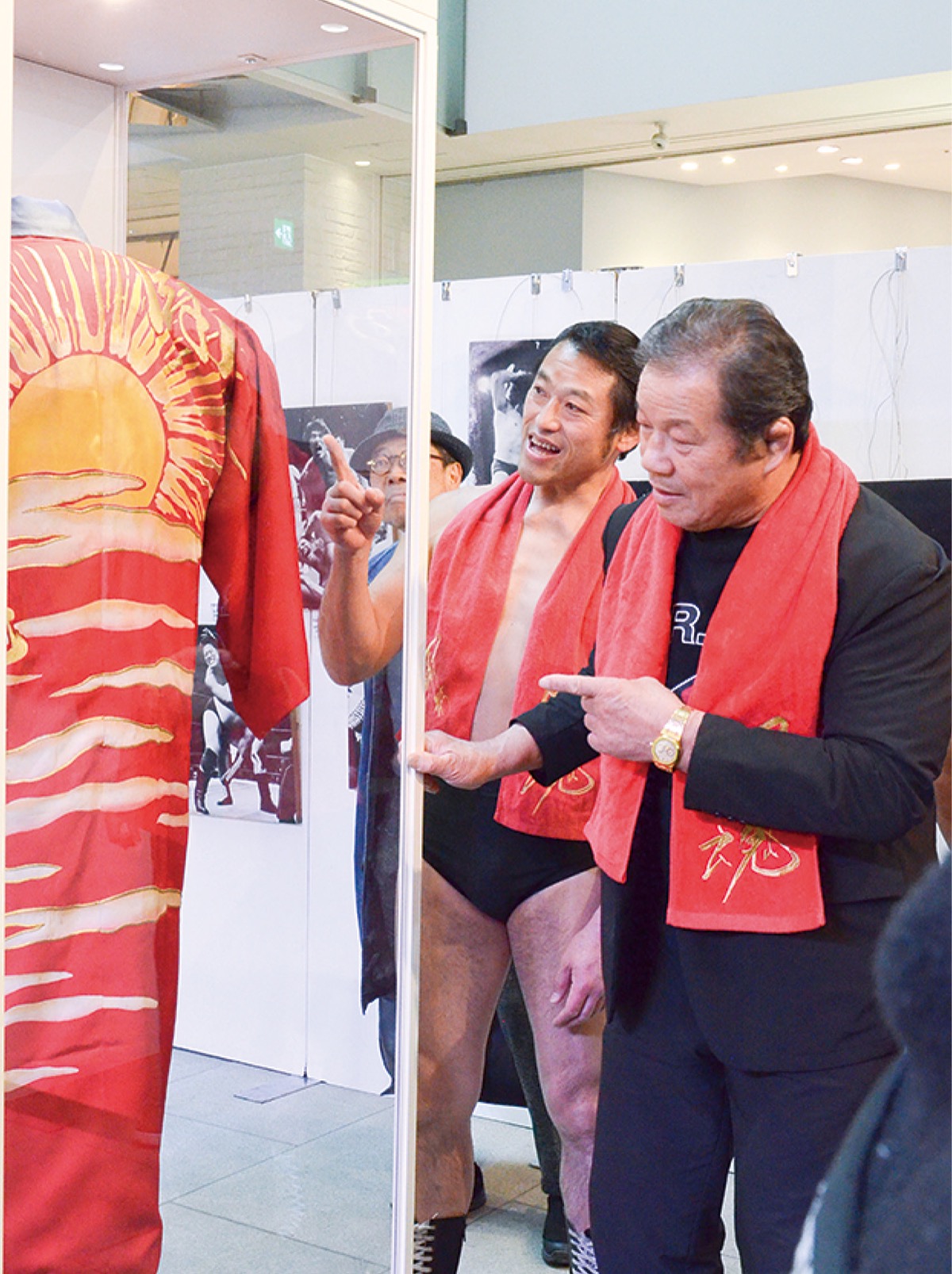 会期前日にはプロレスラー時代の弟子、藤波辰爾さんやものまねタレントのアントキの猪木さん、アントニオ小猪木さんらも招かれ、内覧会が行われた。会場内には、若き猪木氏の試合の一場面をとらえた迫力ある写真のパネルが並び、使用ガウンなどが展示。藤波さんは展示品を見ながら「これはTV番組でアフリカに行ったときだね」など懐かしそうに思い出を語った。