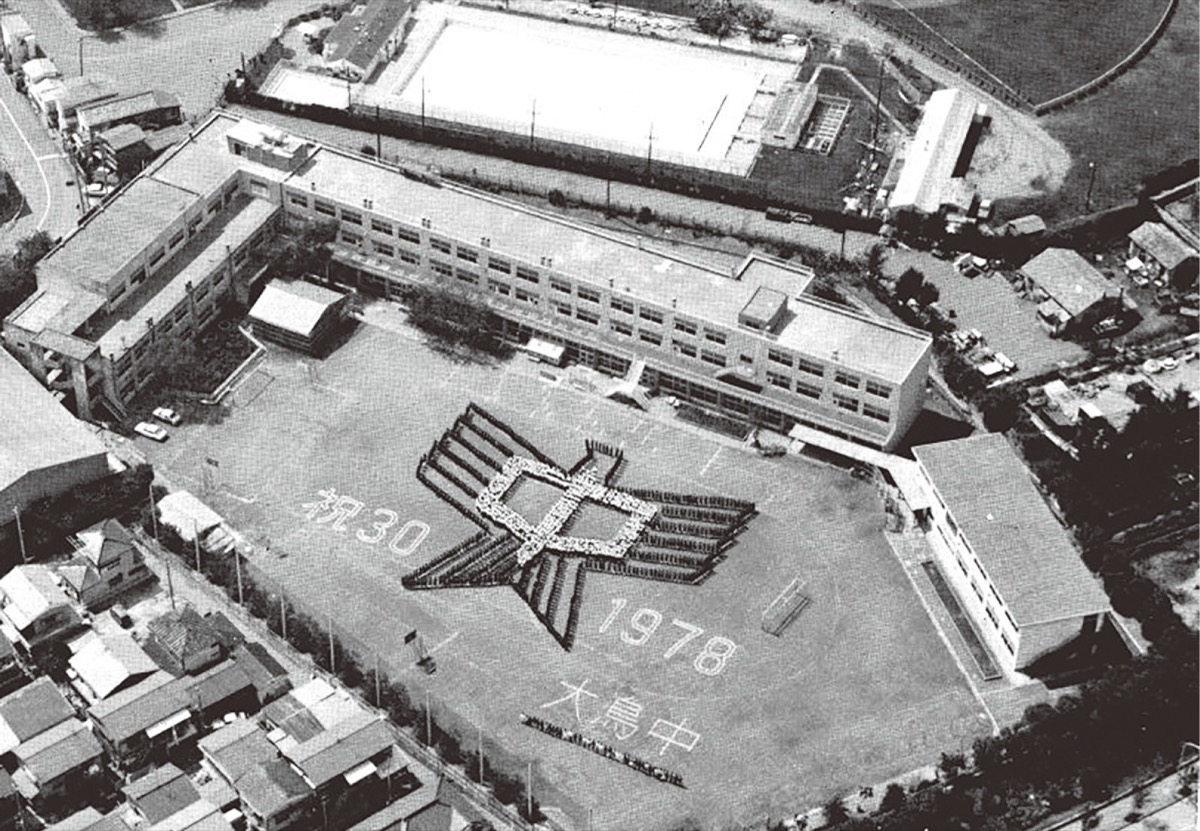 かつて大鳥中学校の校舎北側には50mのプールがありました。現在の大鳥中学校のプールと体育館がある場所あたりですが、これは学校のプールではありません。
