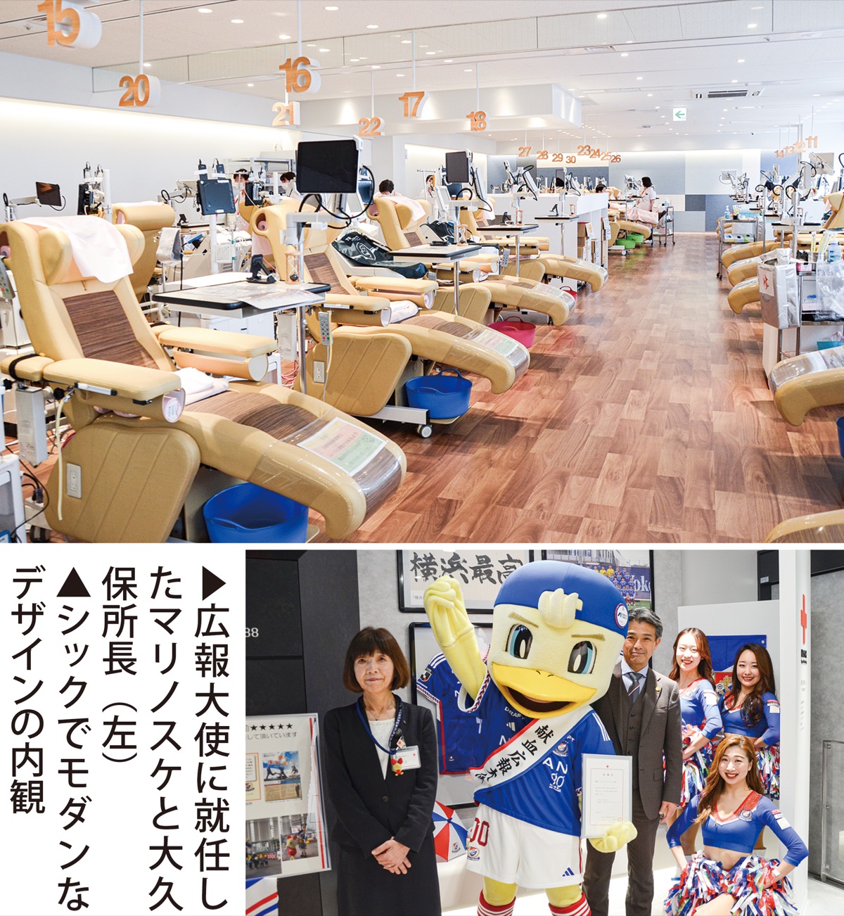 8日には、サッカーJ1の横浜F・マリノスの公式キャラクター「マリノスケ」の神奈川県献血広報大使の就任式が行われた。