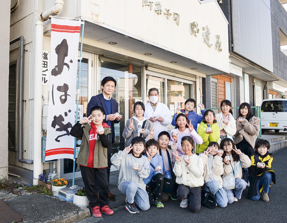 和菓子を作る過程では、田邊屋の塩田弘さん(80)からアドバイスをもらい複数の商品を考案。「実際に販売して地域の人に笑顔になってもらいたい」という児童の思いを受け、田邊屋での販売が決まった。地元の川の名前を商品名にするなど、児童のこだわりが詰まった一品に仕上がった。