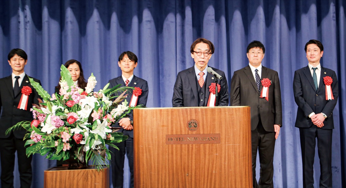 県内の弁護士が所属する神奈川県弁護士会の2024年度の会長らを紹介する新理事者就任披露懇親会が4月1日、ホテルニューグランドで行われ、法曹関係者など約200人が参加した。