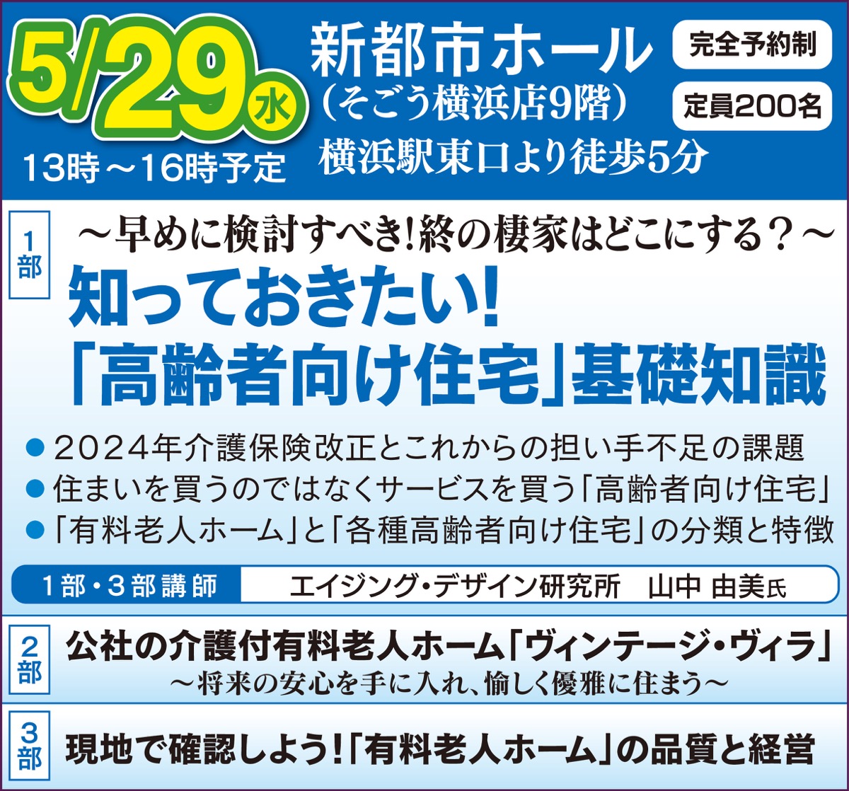 神奈川県住宅供給公社主催 シニアライフセミナー 参加費無料
