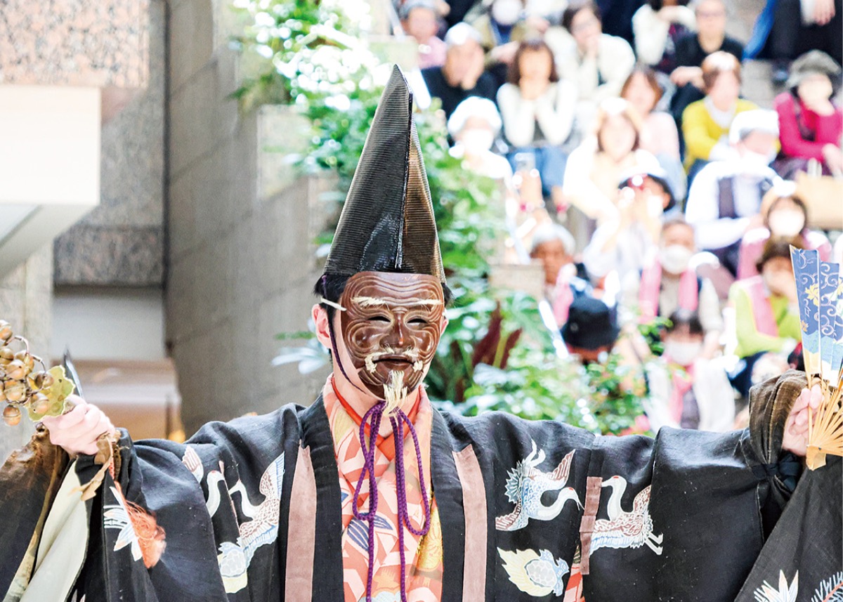 14日はオープンに先立ち、市内で郷土芸能を継承、活動する団体によるお練りと若手能楽師2人の共演による「三番三/三番叟」が披露された。ドンドンと地を踏み鳴らす躍動感ある舞で、同施設のオープンを華々しく祝った。