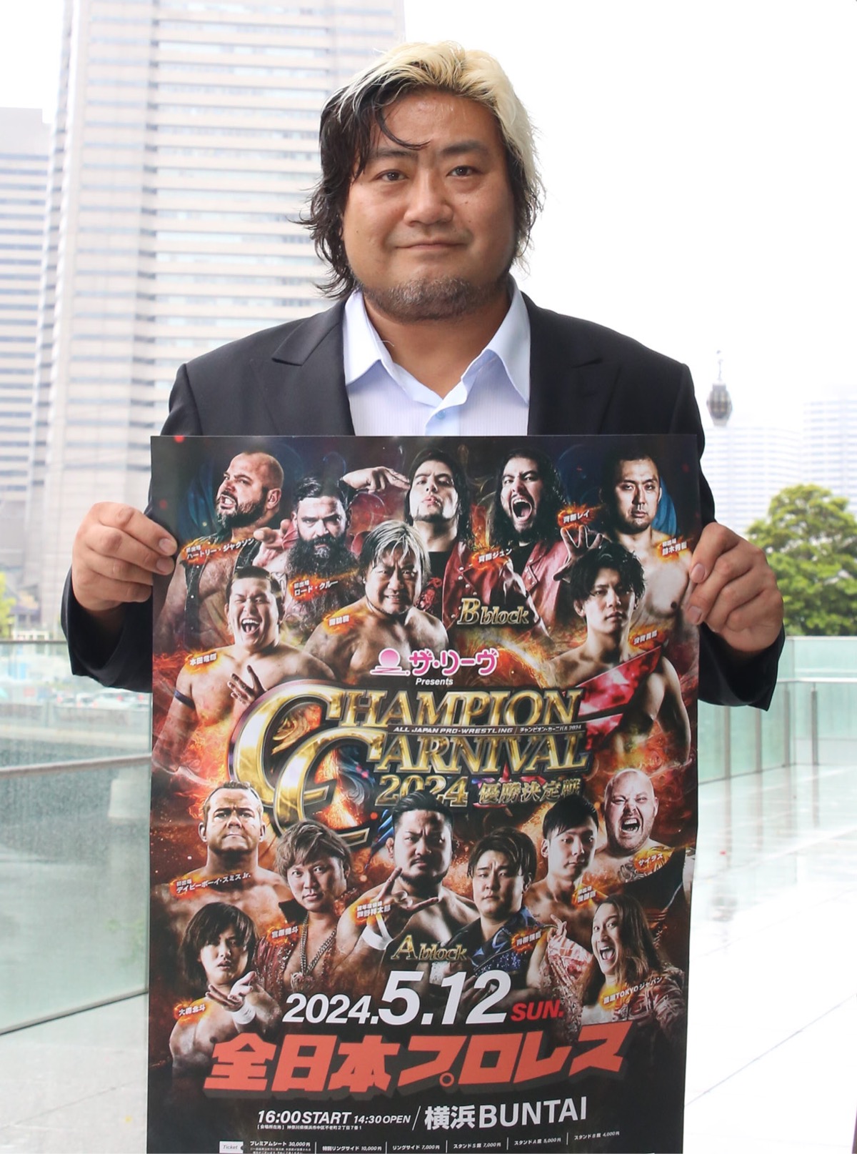 プロレス団体「全日本プロレス」による横浜BUNTAI大会が5月12日(日)午後4時から行われる。大会を前に同団体の中心選手である諏訪魔選手が横浜を訪れた。