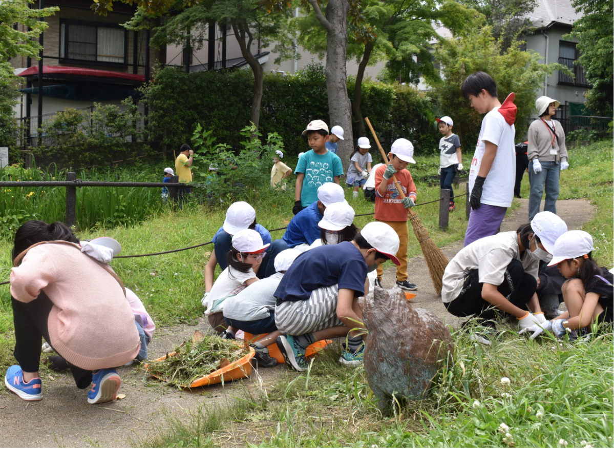 蒔田の森公園では、計152人の児童と地域住民ら約30人が参加。草ごみを中心に30リットルのゴミ袋17袋を集めた。企画・運営を行ったルンルンふれあい実行委員の児童は、「地域の人とふれあいながら、清掃ができて楽しかった。目的が達成できたと思う」と話した。