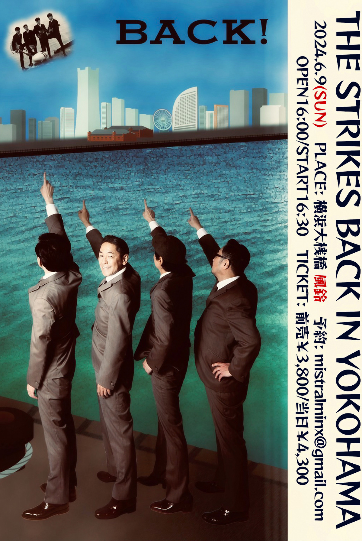 1980年〜90年代に活躍したバンド「THE STRIKES」が6月9日、横浜・大さん橋のLive House風鈴でワンマンライブ"THE STRIKES BACK IN YOKOHAMA"を開催する。開演は午後4時30分。前売り券3800円、当日4300円(ドリンク付)。チケットは mistralminx@gmail.comから。