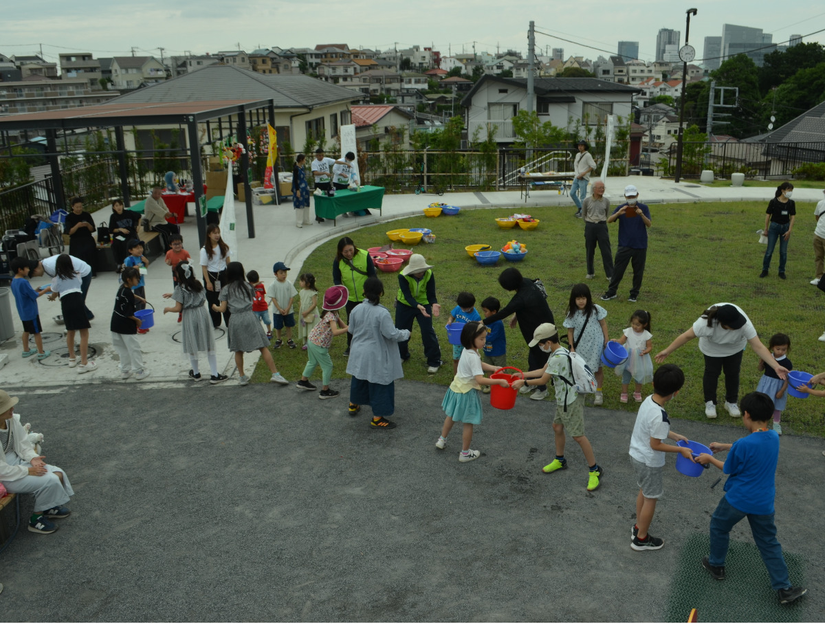 主催は一本松まちづくり協議会と羽沢西部自治会。横浜市都市整備局防災まちづくり推進課と地域の防災活動の魅力化を支援するNPO法人プラスアーツが企画協力し、周辺地域の子どもたち約30人が集まった。