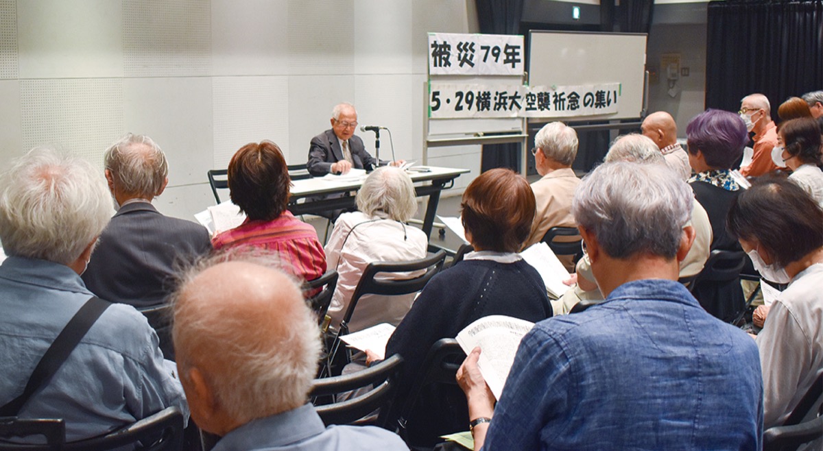市民団体「横浜の空襲を記録する会」は29日、横浜にぎわい座=野毛町=で恒例の「横浜大空襲祈念のつどい」を開催した。市内在住の笠原實さん(93)の体験談に約100人が耳を傾けた。