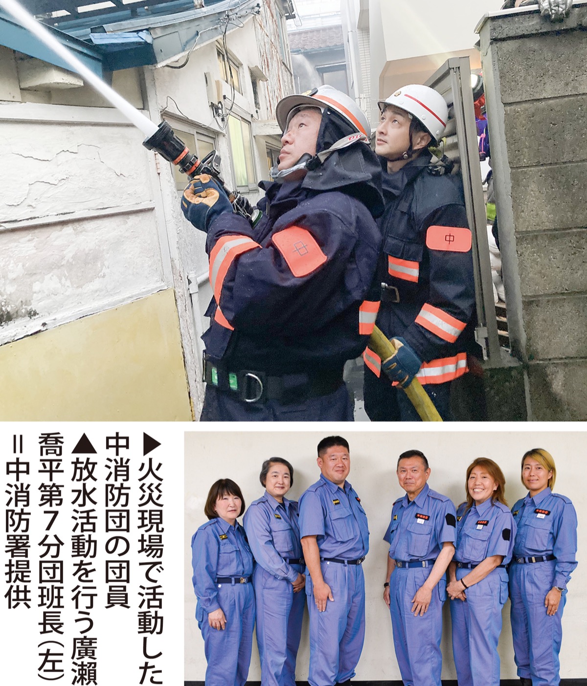 消防団員は非常勤特別職の地方公務員で、普段は別の仕事や家業を持ちながら地域で発生した災害などに対応する。現在、中消防団には約430人が所属し充足率は約90%だ。