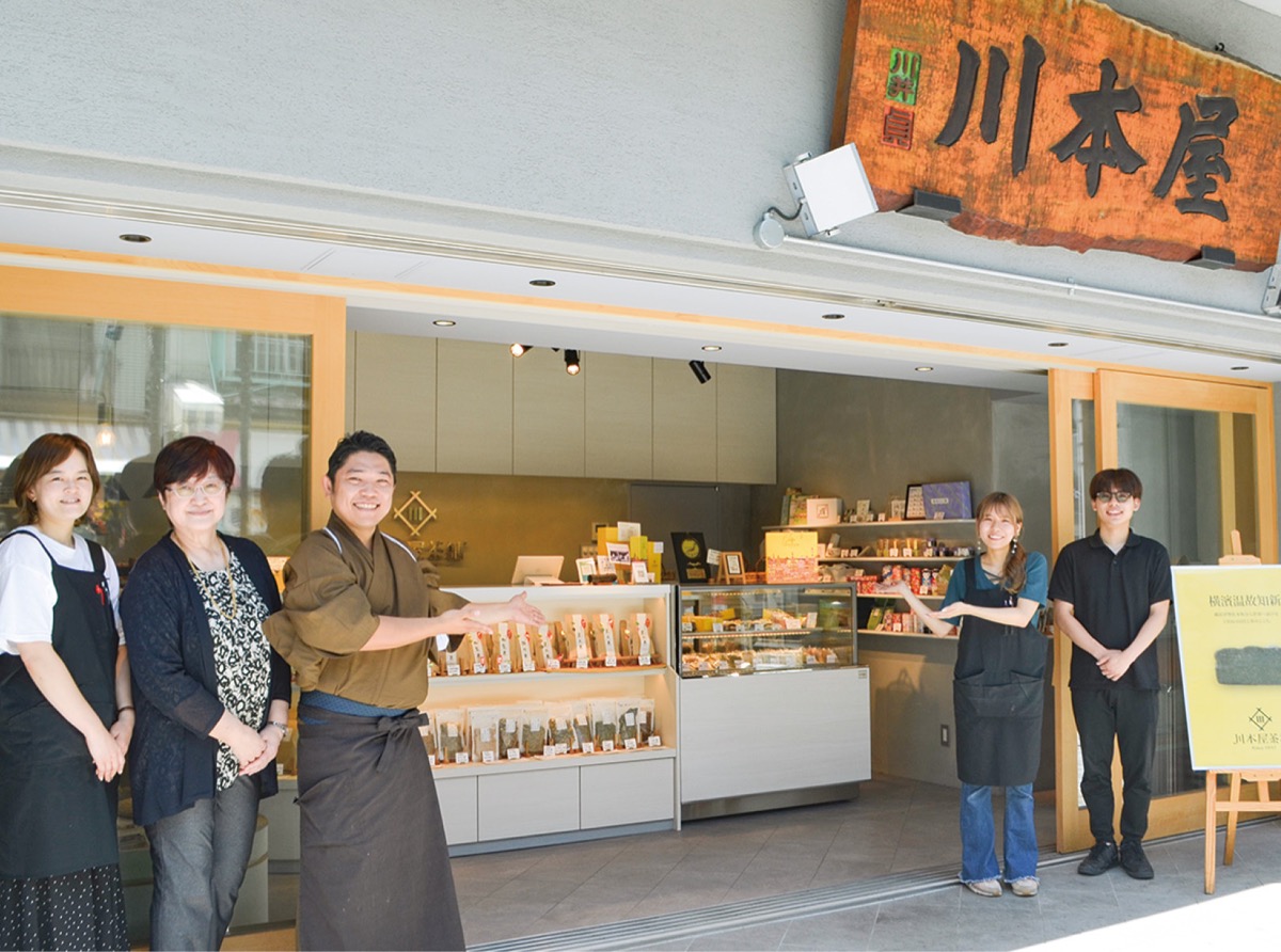 川井喜和副社長=写真中央=は「リニューアルしたことで若い方も来店してくれるようになった。街の活性化にもつながれば」と語る。