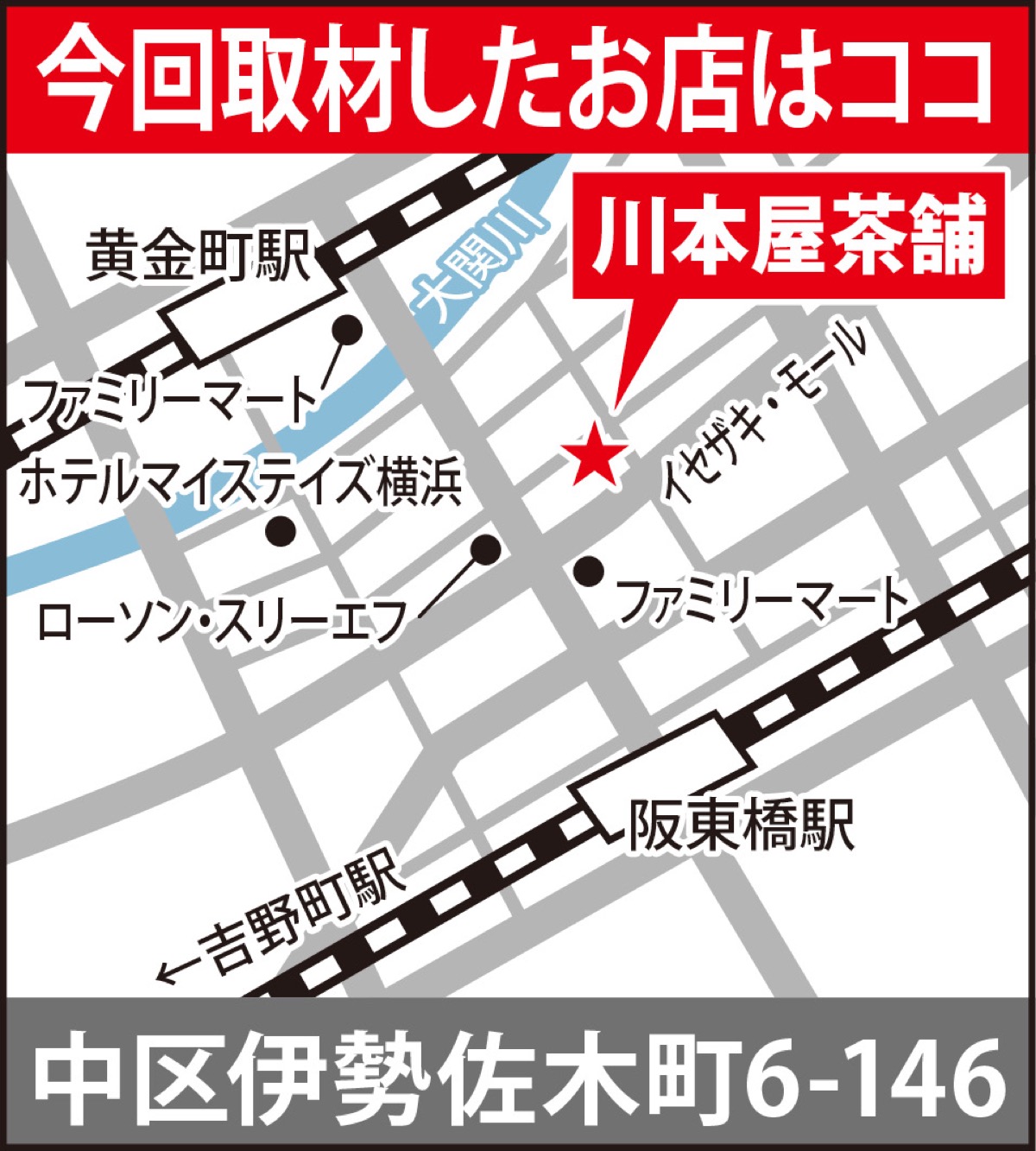 宇治抹茶や玄米茶、ほうじ茶などを使ったパウンドケーキ(280円)やネット販売で大ヒットした抹茶ガトーショコラ(400円)と、お茶専門店ならではの素材にこだわったスイーツの数々が常時13種類ほど並ぶ。イセザキのレトロな街並みが描かれたオリジナル缶入りは、帰省土産にもぴったり。自慢の「静岡産 炭火茶」は香り高く、昔ながらの手間暇かかる棚式火入れ製法を行うのは全国でも同店だけだという。