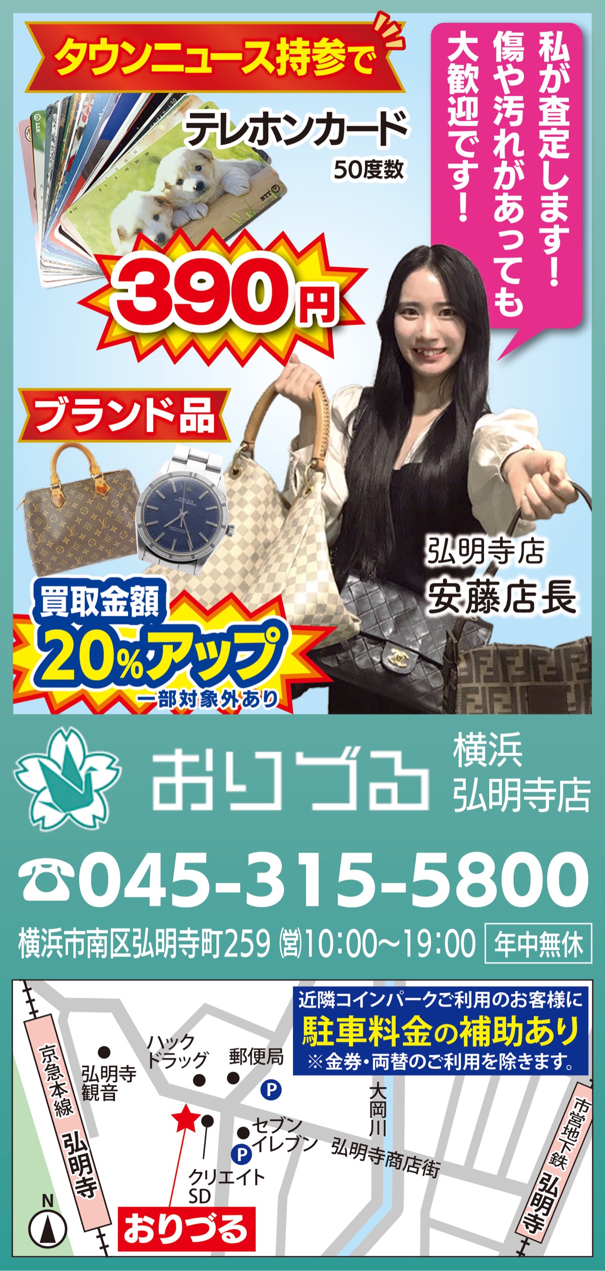 先週、日経平均株価が史上最高値を更新して、日本経済に明るい兆しが見えている。買取おりづる横浜弘明寺店の安藤店長によると買取相場にも良い影響があるという。「ブランド品市場が活況で、特にロレックスやルイヴィトンは高値が付きやすいです。消費意欲が高まっている今がブランド品の売り時です」と安藤店長は話す。同店ではノーブランド品も買い取ってくれるので、気軽に査定を依頼しては。