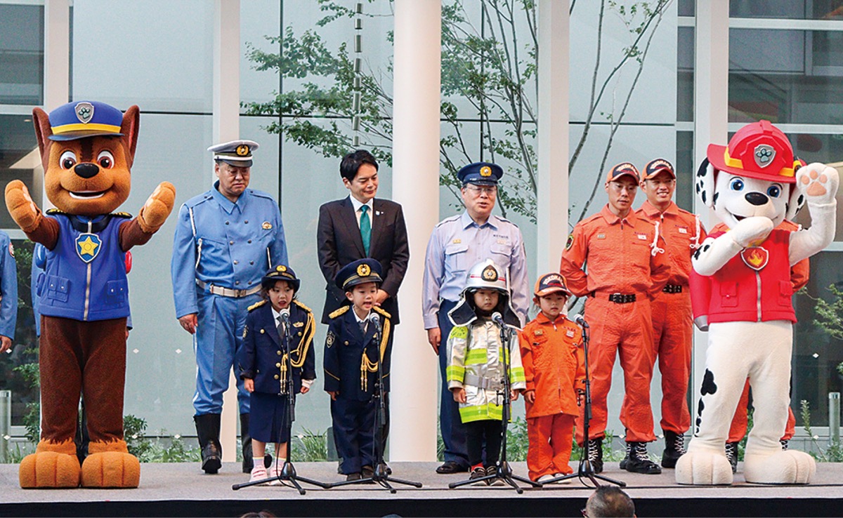 続いて警察と消防の制服を着た子ども4人が登場し、「みんなで安全宣言」を実施。最後には、横浜市消防音楽隊の演奏するアニメの曲に合わせて、チェイスやマーシャルらと一緒に、子どもたちが笑顔で「パウパトダンス」を踊った。