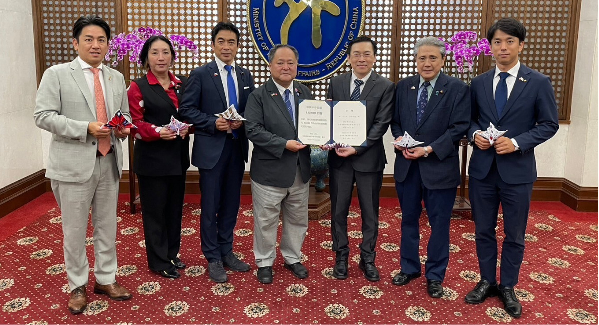 今年4月に発生した台湾東部沖地震の被災者を支援しようと、日華親善横浜市会議員連盟が現地の財団法人賑災基金会に義援金82万円を渡した。