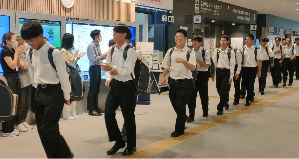 選手らは区職員が列を作り、拍手に送り出されて区役所を後にした。区職員の中にはY校出身者もおり、盛り上がりを見せた。