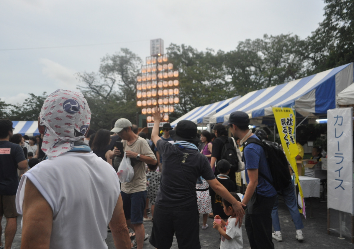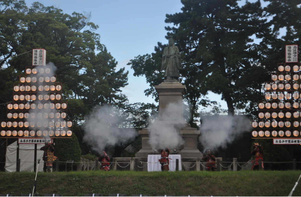 彦根藩の藩主であった井伊直弼公の銅像の前では野点や琴と尺八の演奏が行われた。広場では鈴虫の販売や模擬店が多数出店。ぼんぼりの温かい灯りが照らす中、多くの人が訪れ、日本の伝統文化と夏の風情を楽しんでいた。