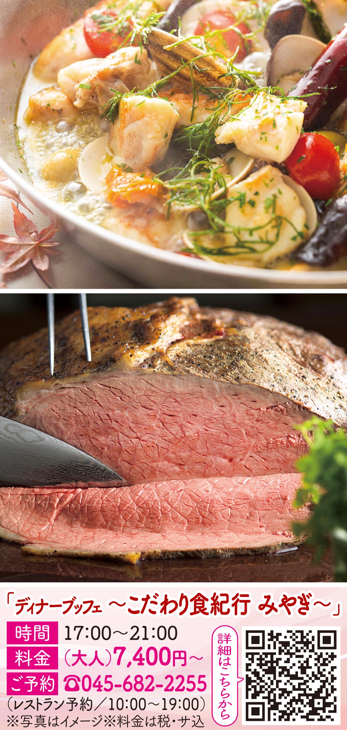 みなとみらい駅直結の横浜ベイホテル東急2階「カフェ トスカ」では、毎年人気のディナーブッフェ「こだわり食紀行 みやぎ」を開催中(11月27日(水)まで)。人気のアクションコーナーでは、とろけるような脂の甘さと、きめ細かい肉質が特長の「和豚もちぶた」の「しゃぶしゃぶ」や、その名のとおり、りんごの甘味とニンニクのパンチがきいた味わいが特徴のタレ「ゴリゴリパンチ」とともに楽しめる「ローストビーフ」などを用意。このほか、宮城県のこだわり食材を使ったメニューも数々登場する。