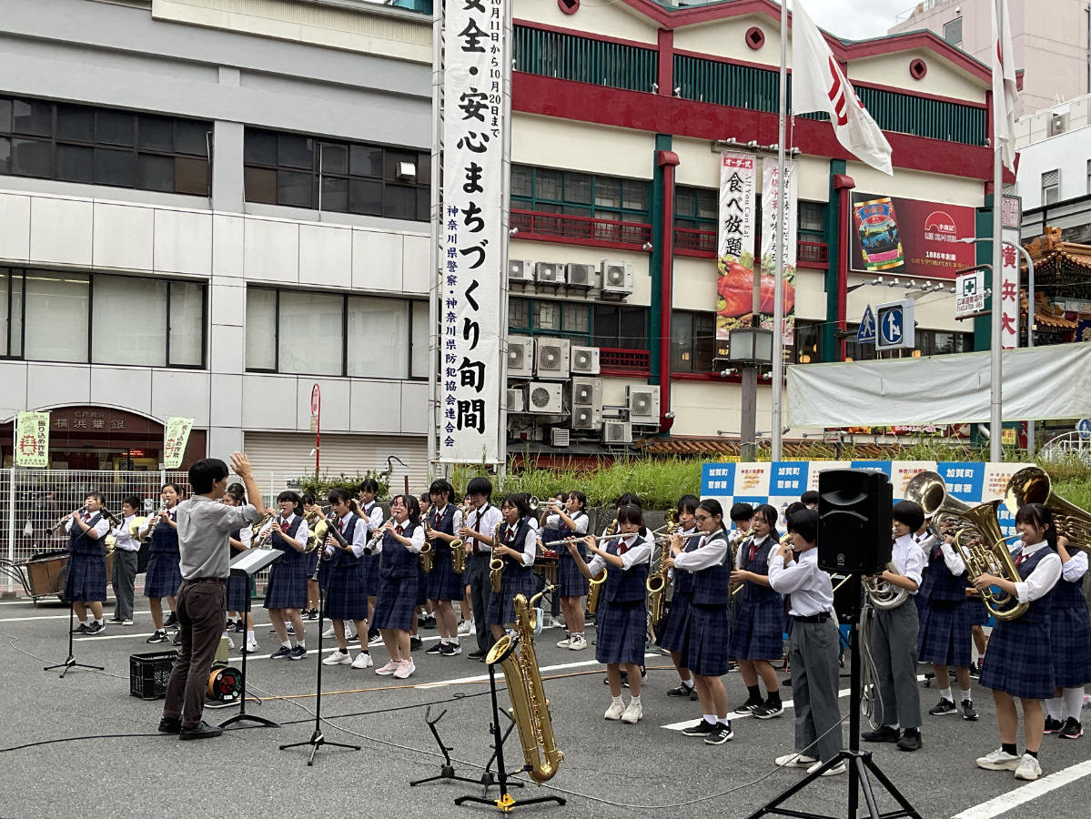 キャンペーン終了後、加賀町警察署前では横浜市立港中学校の吹奏楽部による演奏が行われ、多くの人が足を止めていた。