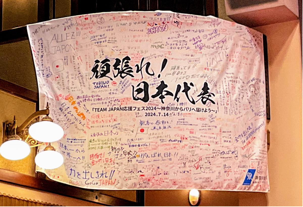 また柳下剛県議会議長や関係者からも祝辞が述べられ、神奈川県立横浜緑園高等学校吹奏楽部の演奏も祝賀会の雰囲気を盛り上げた。そして会場には、県民らが選手に向けて送った応援メッセージの横断幕も展示され、式典に花を添えた。