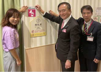 10月31日には民間施設としては初めて、横浜ワールドポーターズの授乳室に「搾乳」マークを掲示。同日の掲示セレモニーに黒岩祐治知事、坂上理事長、同施設を運営するイオンモール株式会社の武田久和東日本支社長が参加した。