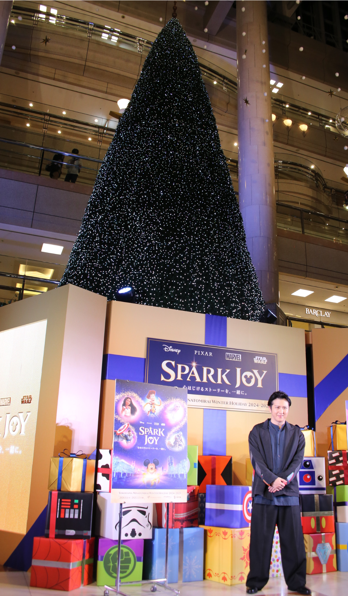 同日から始まったホリデーイベント「YOKOHAMA MINATOMIRAI WINTER HOLIDAY 2024-2025」では、ディズニー、ピクサー、マーベル、スター・ウォーズの4つの世界を音と光で表現したツリーが施設を彩る。