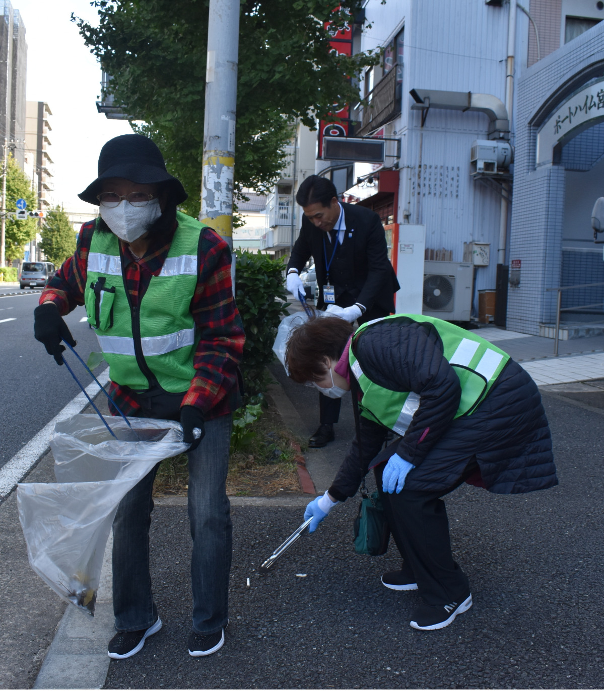 東蒔田第一町内会などのグループ清掃には、高澤和義区長らも参加。「ごみを拾って地域の繋がりを深めることは、防犯にもつながる。これを機に顔の見える関係を深めていただければ」と話した。