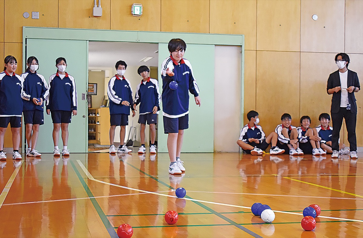 南区別所の南が丘中学校の2年生が11月、パラリンピックの種目でもある「ボッチャ」の体験学習を行った。