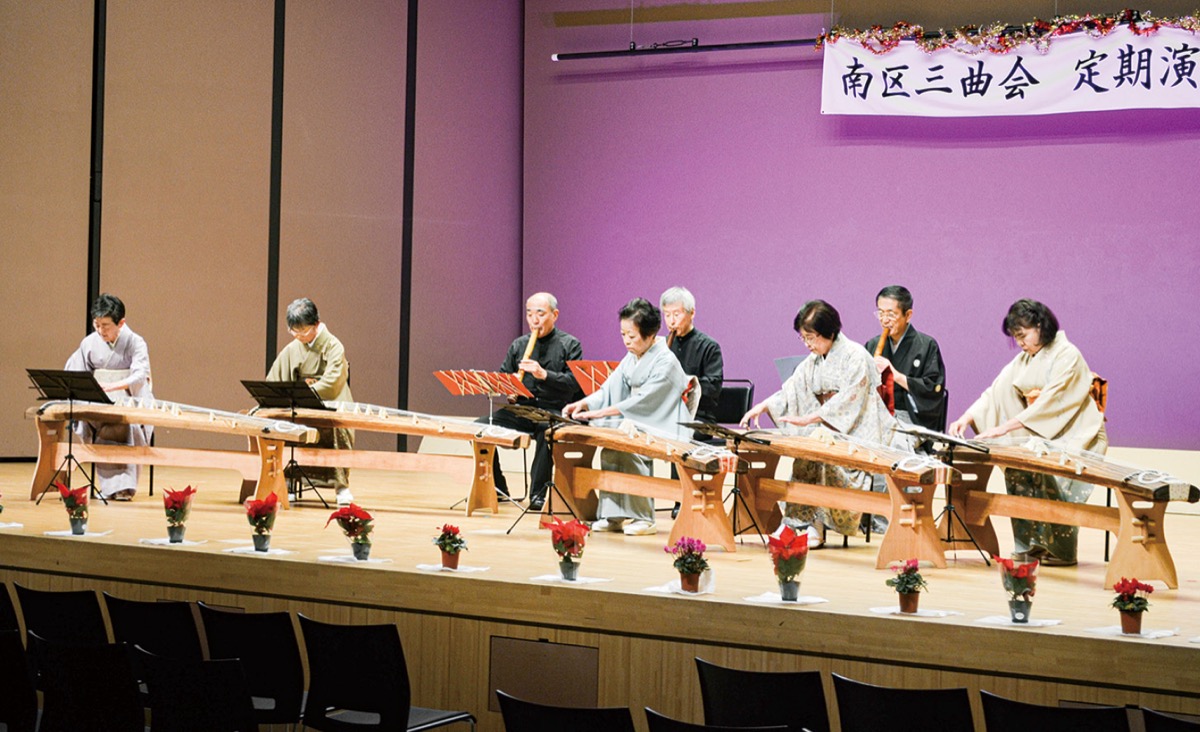 『六段の調』や『花・鳥・風・月』、ポップス集、クリスマスソングメドレーなどを箏、三絃、尺八で演奏する。